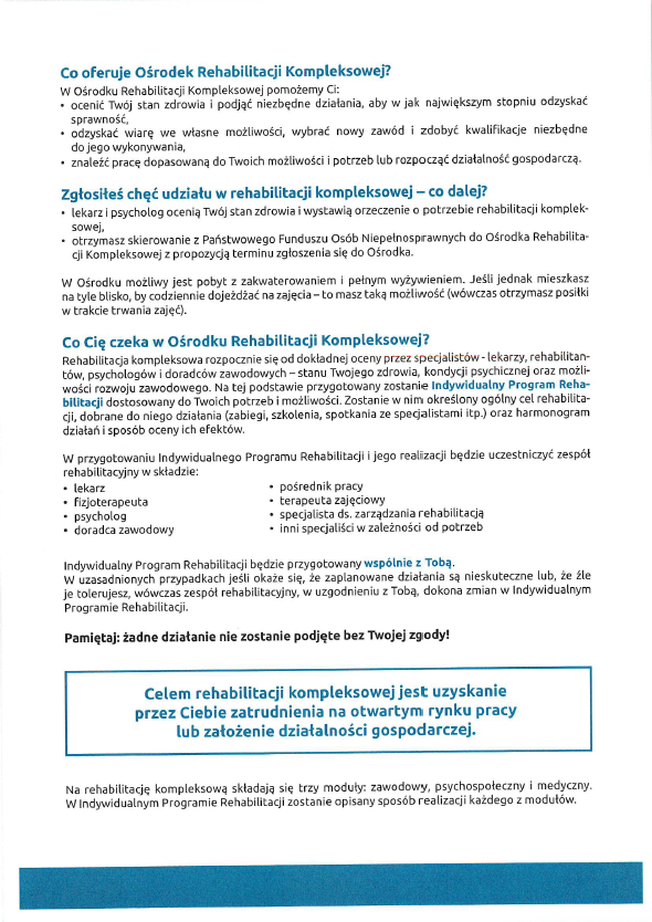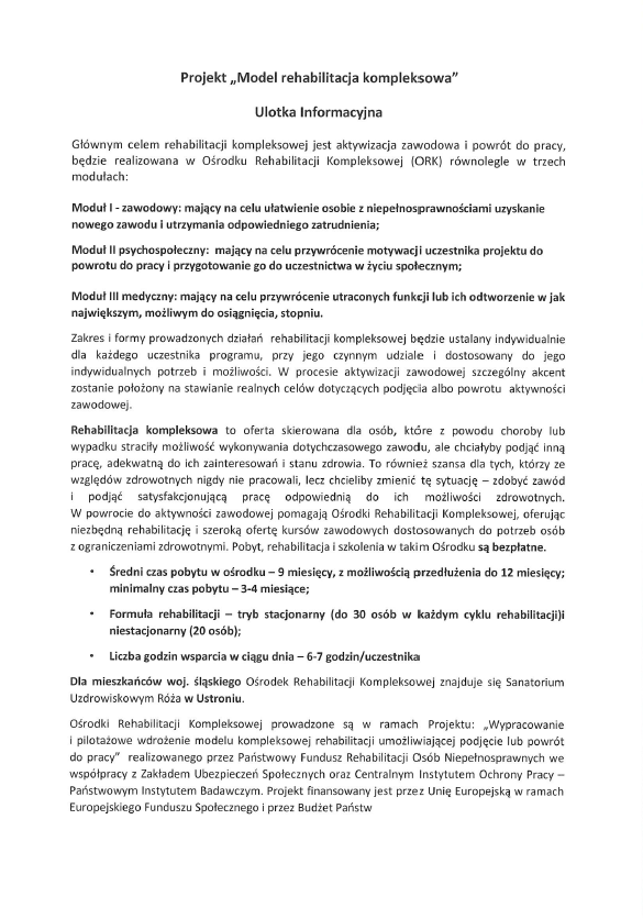 Projekt - Model rehabilitacja kompleksowa - Powiatowy Urząd Pracy w Raciborzu